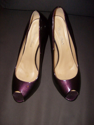 5. лаковые босоножки глубокого фолетового цвета, на улицу надеваные один раз, на узкую ногу -размер 38-39. 200 руб.