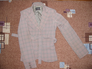 Пиджак шился на заказ на высокий рост, размер 52-54, оказался мал. Новый!! Изумительная ткань-шерстяной кашемир и натуральный шелк подклад. Цена 3000р.