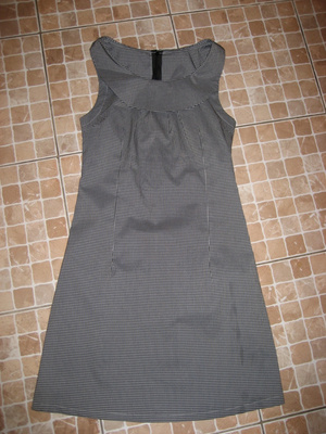 платье для офиса (классический рисункой),можно носить отдельно или с водолазкой, длина 80 см, талия - 70 см, по подолу 106 см, форма чуть приталенная трапеция, женственно, но при неидеальной осинной талии скрывает это, сзади замок. Ткань чуть-чуть тянется. Цена 650 руб.