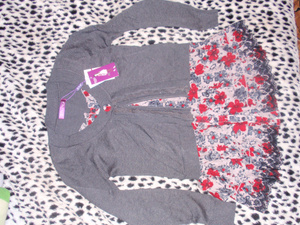 1) Сарафан (идет в наборе с укороченным кардиганом), объем груди 98-100, Талия 85. Ткань - полиэстер. Приобретено на американском сайте ideeli. Причина продажи - не подошло по размеру.