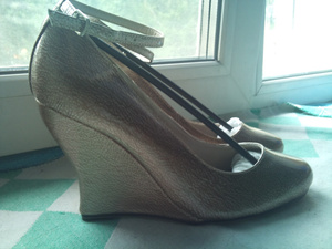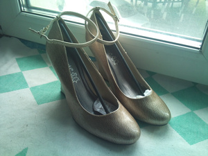 туфли новые на танкетке золотистого цвета, размер 38, мне большие