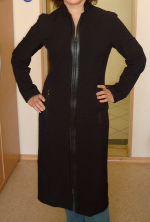 4. Плащ, Испания, на 42-44, верх -трикотаж с пропиткой + отделка кожей, приталенный - 650 руб.