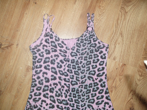 черное пятнистое - оч хорошо скрывает недостатки фигуры, можно и для беременных, но если только грудь не больше 2го размера, носится без бюста, есть вставленные поролоновые чашечки