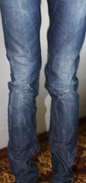Продам джинсы известной ит. марки Frankie Morello разм 44-46 rusЦвет сине-голубой с потертостями, декор- замок во всю длину (см фото) Очень стильные и необычные. Не тянутся!!!! Длина внешнего шва 104 см. длина внутр шва 83 см. Длина (не ширина) где ширинка там мерила (посадка) 20 см. Ширина штанины на уровне колена 19 см. Ширина от начала, где пуговица 40 см. Ширина на уровне бедер 48 см. Не помню сколько стоили:) Почти новые б/у пару раз. Причина продажи- стали большие:) Отдам всего за 1500 руб. .