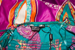 Платье – до колена, красивого лазурного цвета. Отмечу ткань. Не мнется, но при этом очень дорого и эффектно смотрится. Такое хорошо брать в отпуск - место в чемодане займет мало, вариантов великое множество, плюс не надо заморачиваться с утюгами. Платие [цвет:red]one size, то есть на любой размер от 40 до.... Стоило 250 долларов. Урвала на закрытой распродаже с очень хорошей скидкой, но сейчас понимаю, что не очень-то оно мне и нужно. Гардероб довольно большой, а это решение для практичной минималистки. НОВОЕ. Продам за 2900 рублей. Мне обошлось подороже.