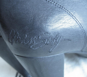 Шикарные сапожки Miss Sixty made in italy. 100% оригинал! Разм 38.5-39. Маркировка 39, но немного маломерят. Черные, кожа отличного качества. Б/у. Состояние идеальное, причина продажи- большие.(чуть содран каблук, почти не видно). Очень модненькие, выглядят дорого, на ноге сидят великолепно. Создают эффект маленькой ножки. Каблук 10 см. Покупала за 7500 руб. Всего 2200 руб.