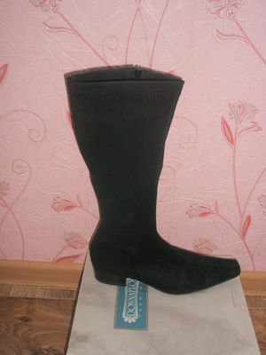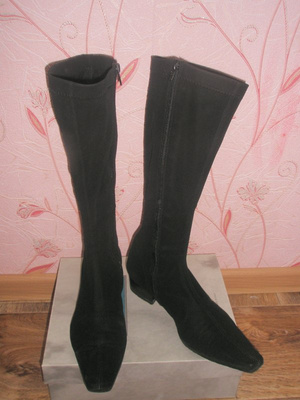 Сапожки-стрейч. Италия. Дорогие, качественные. Б/у, состояние хорошее. Стираются спокойно. На одном носу незаметная царапка. Размер 37-38. На любую стопу и голень. Стройнят ножки. 350руб.