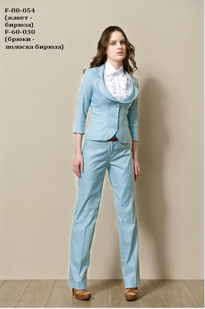 Отличное пополнение гардероба - брючный костюм нежно-голубого цвета в тонкую бледно-бежевую полоску!