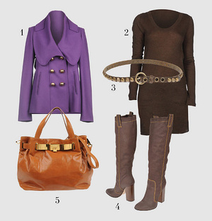 Сломала всю голову себе. Вот у меня такое платье и темно-коричневые сапоги из кожи, до колена, на высоком толстом каблуке. И какую ж мне сюда сумку-то?