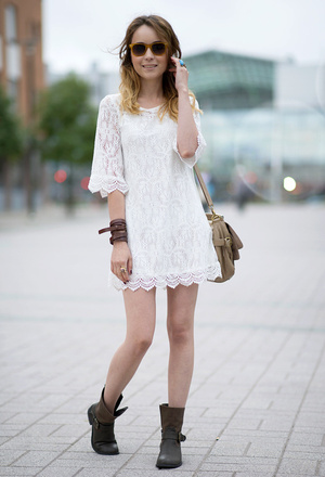 А можно в противовес такому нежному женственному платью использовать вот такие вот "хищные" высокие сапоги. Уравновесить всё это дело лёгеньким пальто типа вот такого молочного со шлейфом сзади. И на плечо сумку большую хорошую, типа вот этой. И порядок