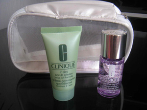 Миниатюры клиник - средство для снятия макияжа, 30 мл, скраб, 30 мл и средство для ухода за кожей вокруг глаз ( нет на фото), 5 мл. За все - всего 500 рб! + косметичка в подарок! Горский мкр.