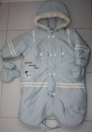А вот мама моя бегала там, как ошалевшая и хватала всё с полок со словами : Нам это надоооооо!!!! В итоге, пришлось объяснить прям в магазине, что нам это не очень подходит, мне объявили два дня бойкота, зато теперь все покупки только после моего согласования! Мама добра желает конечно и я понимаю, что когда росли мы не было всё этого, но у меня другое представление оо одежде новорожденных!Я вот такой купила, фотка не моя, нашла в инете! Он с рождения, до 6 месяцев где-то!На погоду аж до - 35, в комплекте шапочка, шарфик и две пары варежек, прелестных такой и материал очень приятный!