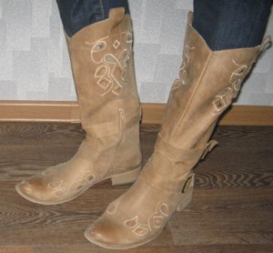 Сапоги в стиле кантри. Размер 40. Полностью кожанные. Без подкладки. С перфорацией. Б/у весной и в начале лета. состояние отличное. на стопу 26.5-27см