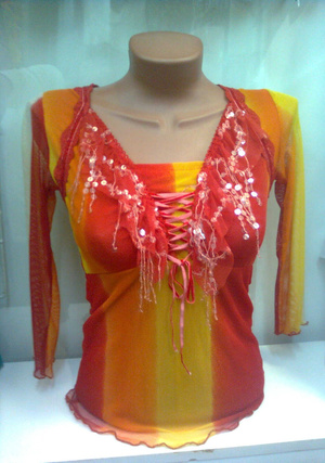 блузка красно-оранжевая на 42 размер, из сеточки, впереди двойная, мягкая - 100 руб.