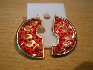 сережки-гвоздики, в форме арбуза, глазурь - 100 руб. не одела ни разу. Размер 1.8 на 3 см. - 100 руб., Тайланд