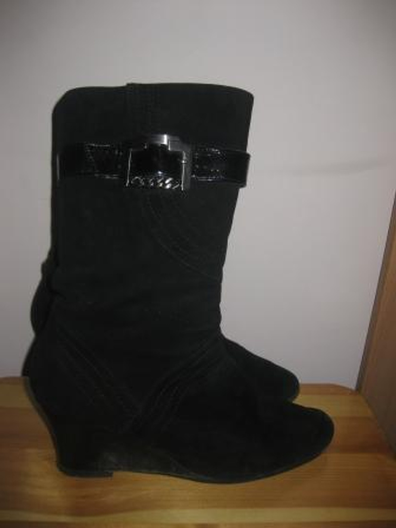 4. Ботинки черные замшевые на натуральном меху, очень теплые, в отличном состоянии, цена 700 руб.