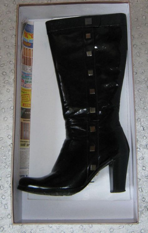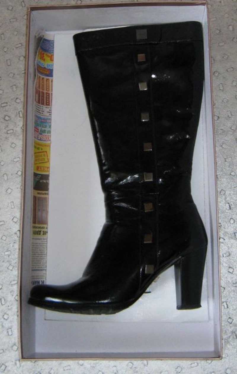 Ботинки зимние натур кожа и мех. Высота без каблука 30 см. Обхват голени - 37 см. Каблук - 6 см (мне в голени большевато :-( ). НОВЫЕ