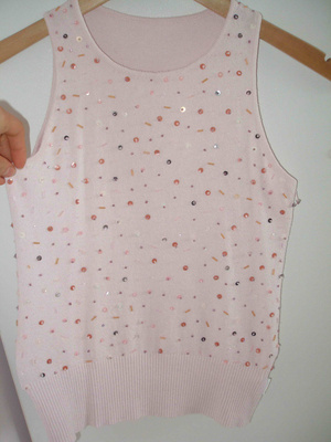 5. ТОП НЕЖНО-РОЗОВЫЙ С ПАЙЕТКАМИ, СОСТОЯНИЕ ОТЛИЧНОЕ, ВИСКОЗА, ТРИКОТАЖ, ЭФФЕКТНО ОТТЕНЯЕТ ЕСТЕСТВЕННЫЙ ЦВЕТ КОЖИ, 250 Р.