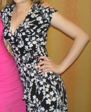 1) платье с запАхом, на завязках сбоку, р. 42-44 (может быть, даже 46)