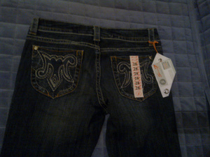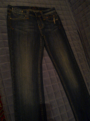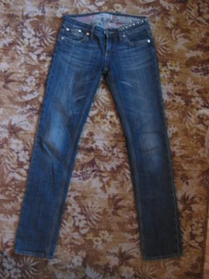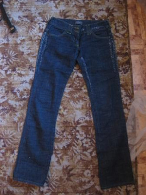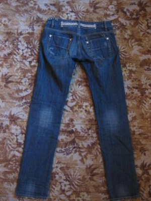 1. Джинсы р-р 42 на рост 170 см и выше. ОБ 90-92 см. Эффект потертости, пояс украшен клепками и стразами. 400 р. Состояние отличное.