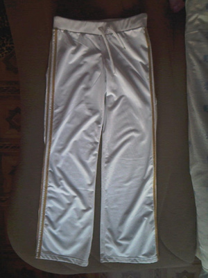 Белоснежные летние штаны с золотыми лампасами. Размер 46-48. Цена - 500 руб.