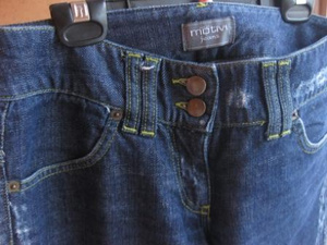 2. Джинсы Motivi. Размер 42. Эффект потертости и поношенности , строчка зеленой ниткой. Состояние тоже очень хорошее, одевались мало. 400 р. ОБ 90-92