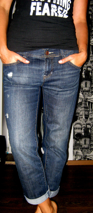 Джинсы НьюЙорке. Модель "бой-френд", длина 7/8. Размер 29, Но в реале на размер-полтора больше, т.к. джинса с хорошим стрейчем. По поясу 90см. Долго искала такие джинсы. но стали быстро большими. Даже ремень не помогает. Состояние отличное. цена 500р