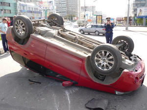 В общем, в этом месте лобовая авария в принципе практически невозможна - двухметровый разделительный газон.Навстречу попался пьяный "гонщик", великовозрастный маменькин сынок. В машине проститутка и пустая бутылка из под коньяка. Дома беременная жена (если, конечно, это не липовая справка для суда была). Скорость у него 140, у нас около 60 (только от светофора отъехали, да и вообще папаня не гонял особо). Он потерял управление, врезался в разделительную, взлетел и приземлился ровно перед нами (мы в среднемряду). У нас 10 метров тормозного следа.