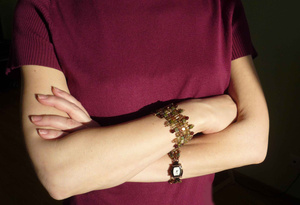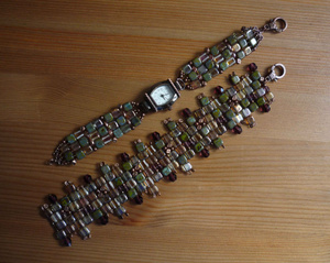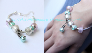 Комплект украшений состоит из двух браслетов, один из них - с часами (кварцевые, японский механизм)
