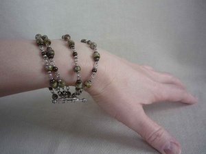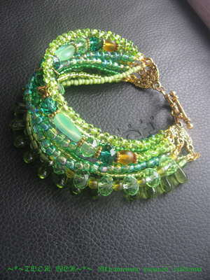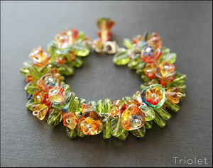 3. "Флора". Тяжеленький шуршащий браслет с листочками-цветочками из чешского стекла. На запястье 16,5-17 см (могу скорректировать в любую сторону). Цена 1000 руб.