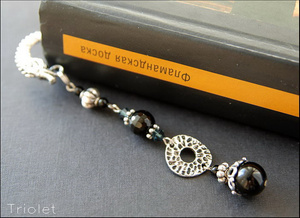 Длина основы 12 см, ларвикит, "кошачий глаз", кристалл Сваровски Crystal clear.