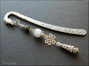 Сдержанную монохромность фурнитуры великолепно оживляет иризация лабрадоритов, играющих на свету.