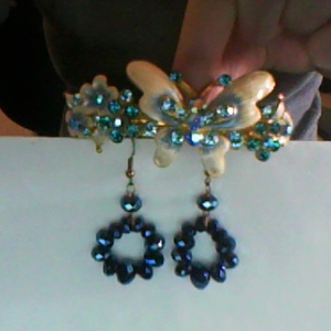 и серьги, тоже новые, тоже такое не ношу, синие перламутровые граненые бусины, почти как стразы, красиво переливаются - 50р