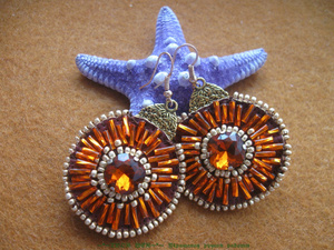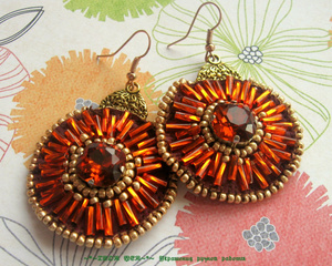 Очень яркие и притягивающие внимание серьги. Использованы очень качественные стеклянные стразы (пр-во Тайвань), которые играют на солнце как драгоценные камни. Также использован качественный чешский бисер и витой стеклярус. Ручная работа. Эксклюзивно и без повторов.
