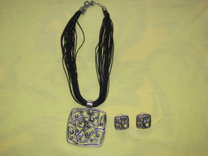 комплект серьги+кулон на декоративном шнуре - отдам за 100 руб.. новое