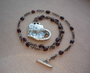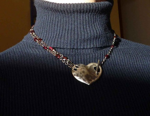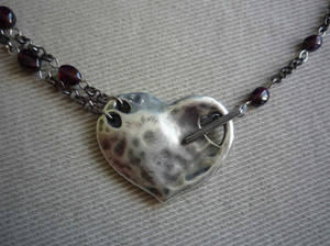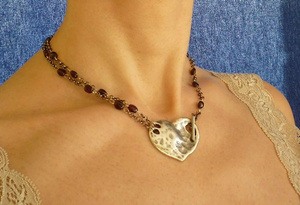 Подвеска-сердце выполнена в кустарно-старинной манере, напоминающей о драгоценной ручной ковке.