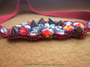 Повязка на голову. Можно использовать как ободок или для прически в греческом стиле. Ручная вышивка стразами, бисером. Также использован модный тренд в украшениях- шипы.