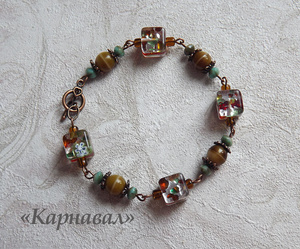 6. Комплект "Карнавал" (браслет+серьги). Бусины Мильефори ручной работы, рисунки на них не повторяются и чешское стекло. 600 руб.