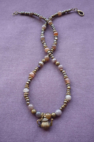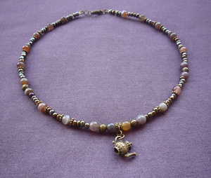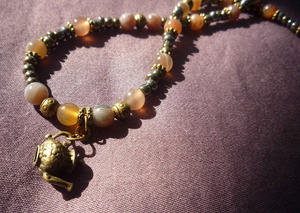 при создании колье с подвеской им ассистировал бисер и фурнитура цвета старинной бронзы