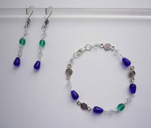 Изящный браслет и утонченные серьги из серебра с аквамаринами и чешским стеклом