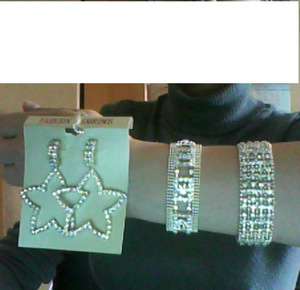 браслет (куплен в Бангкоке) нет одного страза (легко доклеить), в реале желтизны нет (фото-фон) - цена 50 руб.