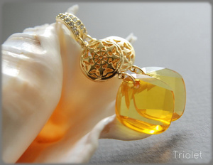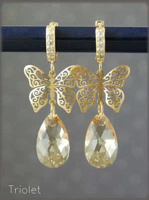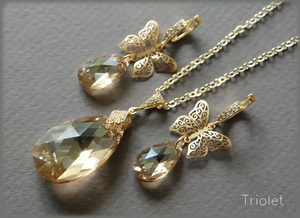 Огранка Baroque, позолоченная фурнитура. Высота кристаллов 22 мм.