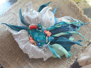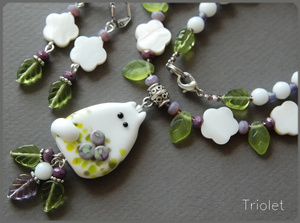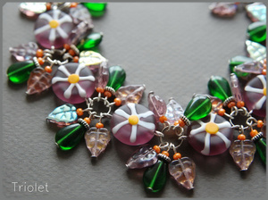 FatCat Hala. Лэмпворк, цветочки из натурального перламутра, чешское стекло.