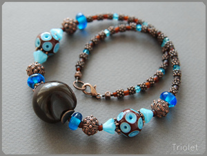 Лэмпворк (частная мастерская, Чехия), орех кукуи, кристаллы Swarovski, чешское стекло, фурнитура цвета меди. Бусы под шейку, длина 41 см (могу поставить удлинительную цепочку 5 см).
