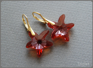 Кристаллы Swarovski Starfish цвета Red Magma, фурнитура - позолоченное серебро-925.