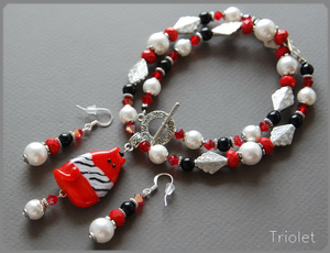 Red FatCat. Лэмпворк, турквенит, агаты, майорка, кристаллы Swarovski.