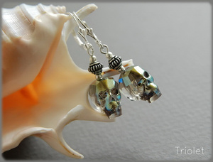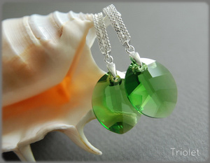 Кристаллы Swarovski цвета Crystal Iridescent Green, вся фурнитура - серебро.