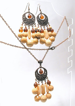 По отдельности: кулон 300 р, серьги 400р, бусы 800р. Все вместе - 1200р.