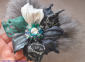 Брошь/заколка из натуральной итальянской кожи и замши с мехом блюфрост. Цена 1500 рублей.