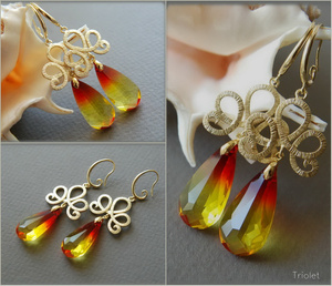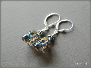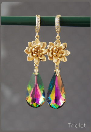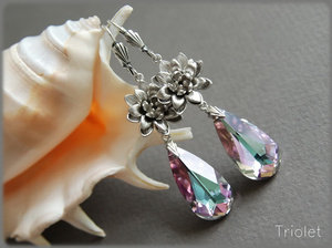 Огранка Pear Drop, размер кристаллов 24 мм, цветочки с покрытием родием, швензы - глубокое посеребрение (Trinity Brass, США). Общая длина 6,3 см.